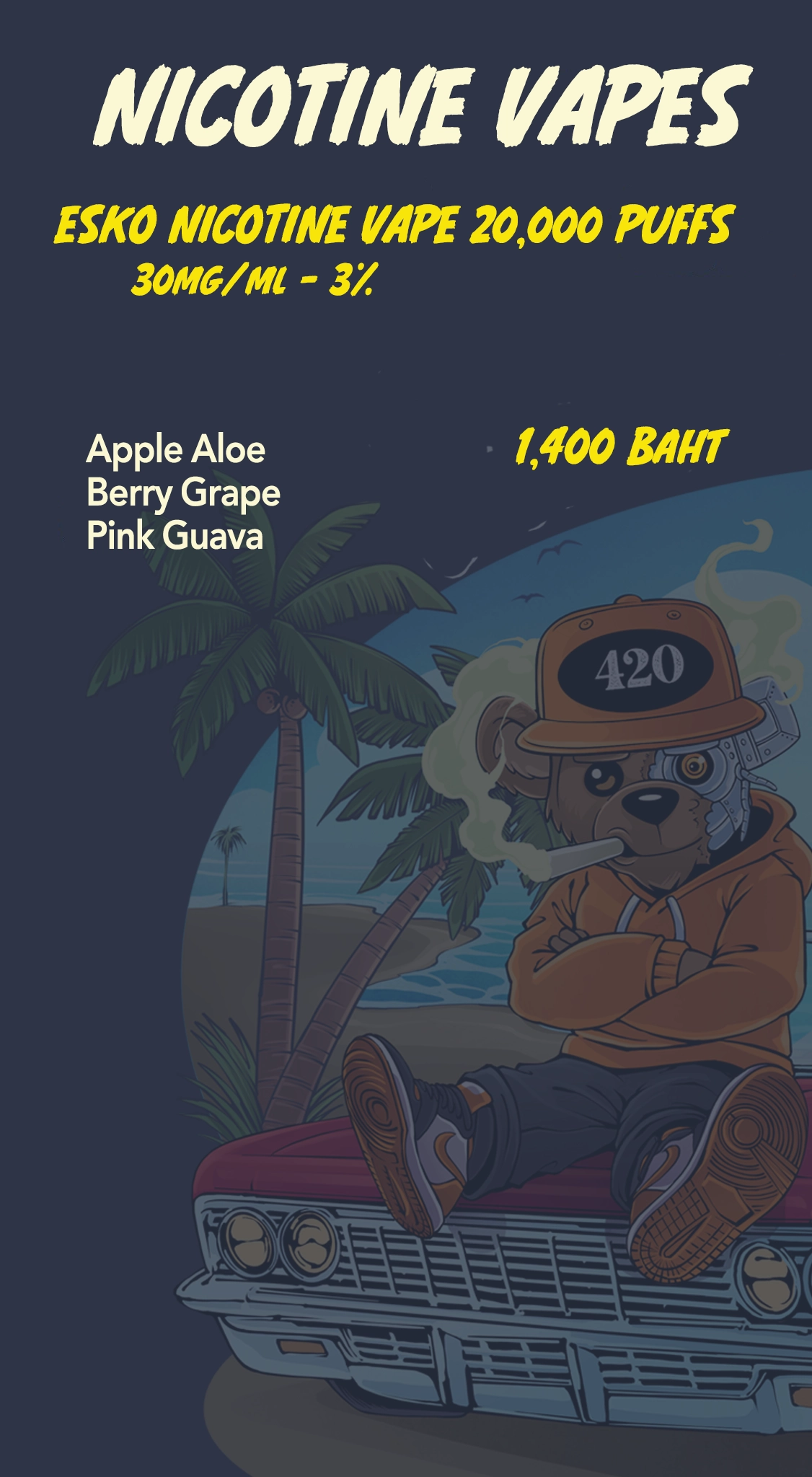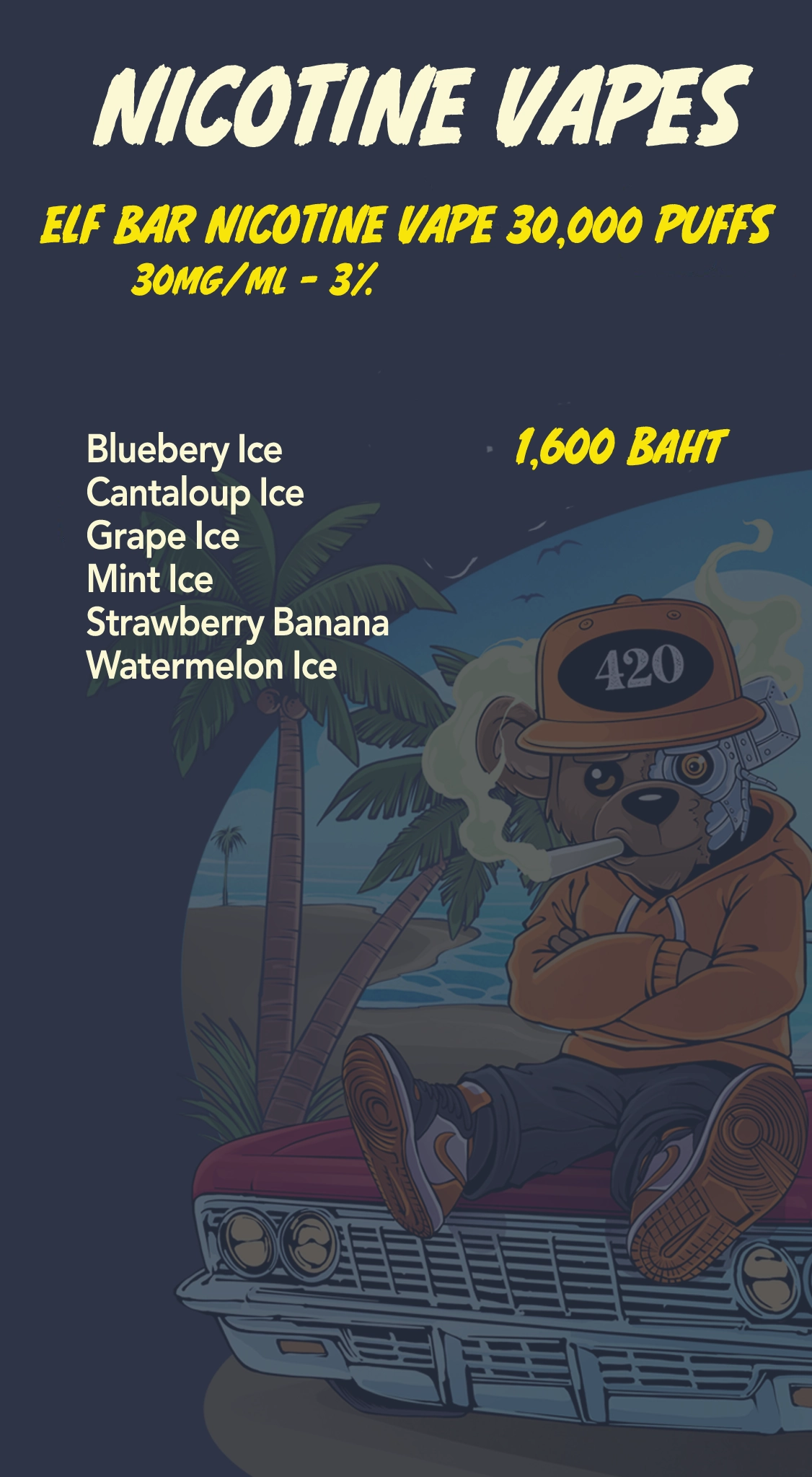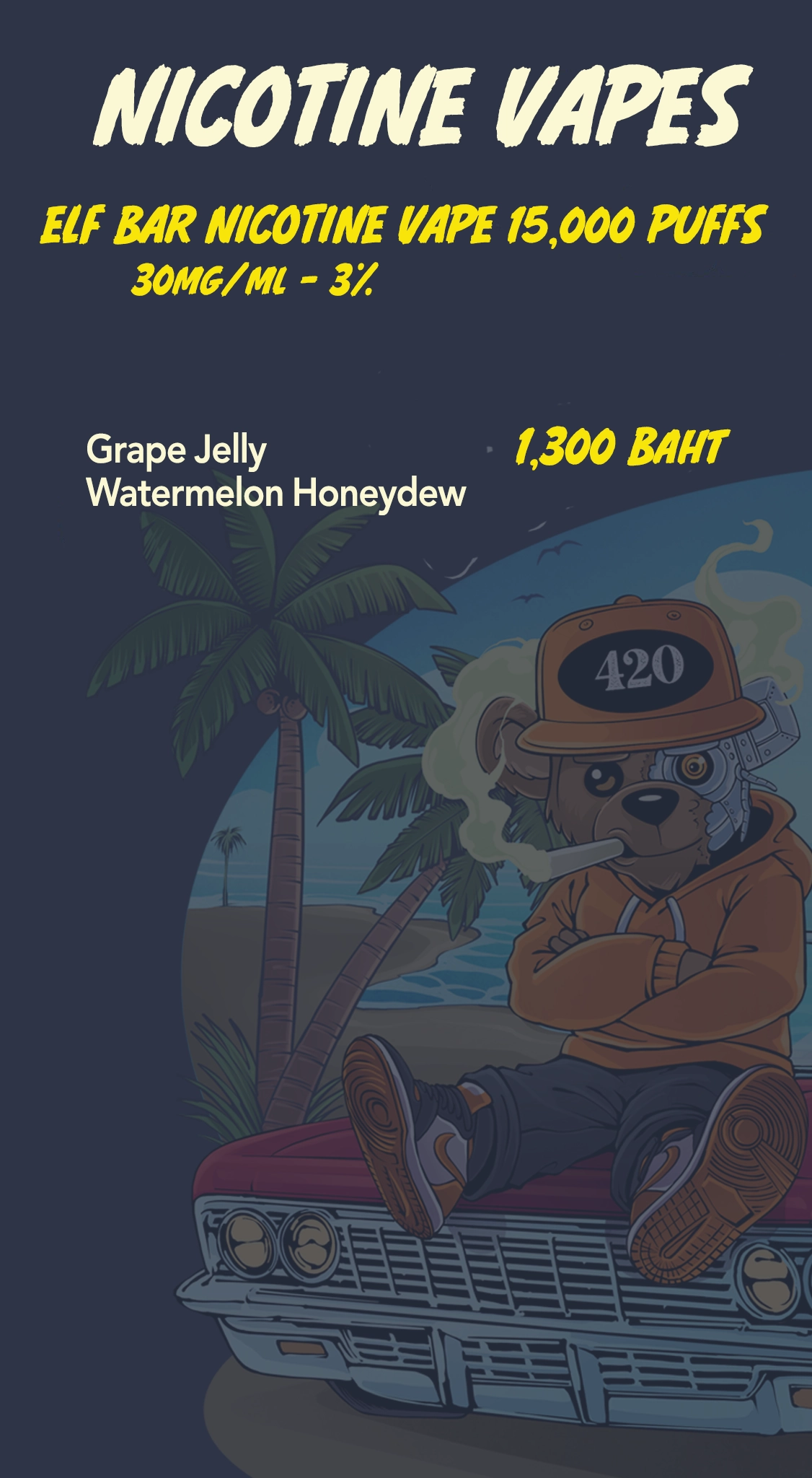 Looking for nicotine vapes in Khao Lak? We offer a range of disposable vape devices available for fast delivery to hotels and villas across Bang Niang, Nang Thong and Khuk Khak. Our nicotine vape devices are easy to use and perfect for visitors looking for a convenient vaping option during their stay.