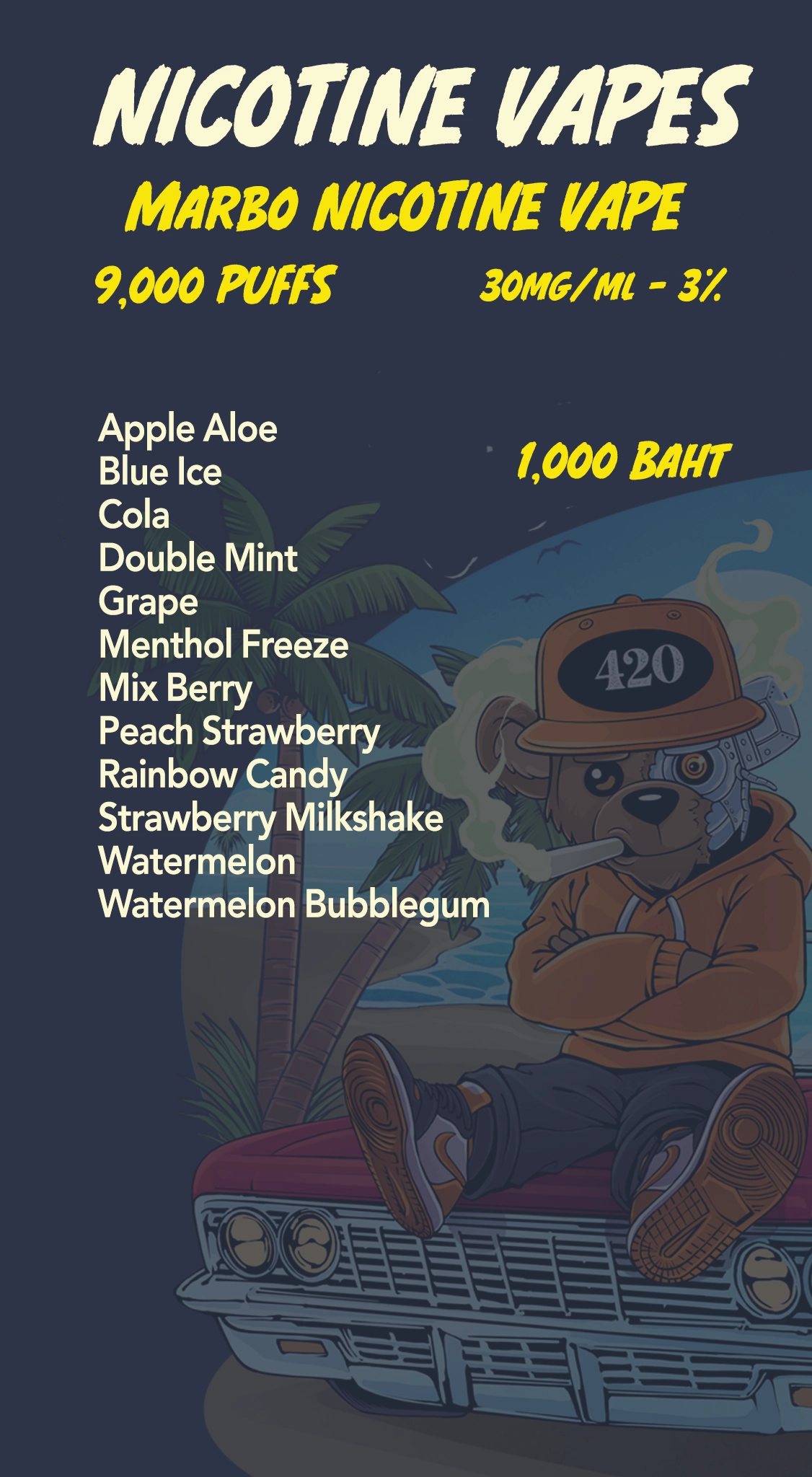 Marbo disposable vape devices are a popular nicotine vape option in Khao Lak. These easy-to-use disposable vapes deliver strong flavour and smooth performance, making them a favourite with visitors and locals alike.